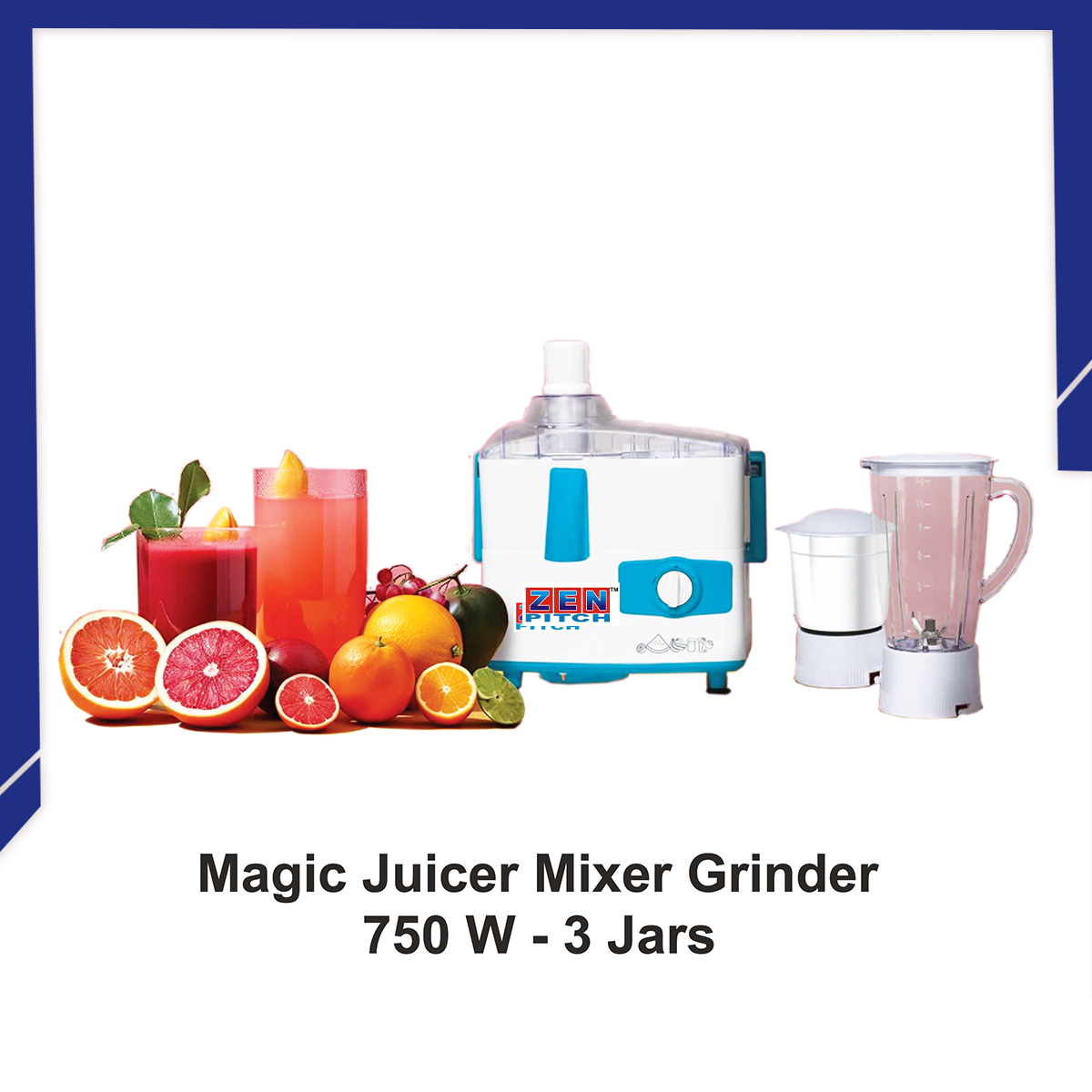 Buy Magic Juicer Mixer Grinder 750 W – 3 Jars at the best price from Zenpitch. Premium quality & long-lasting performance.